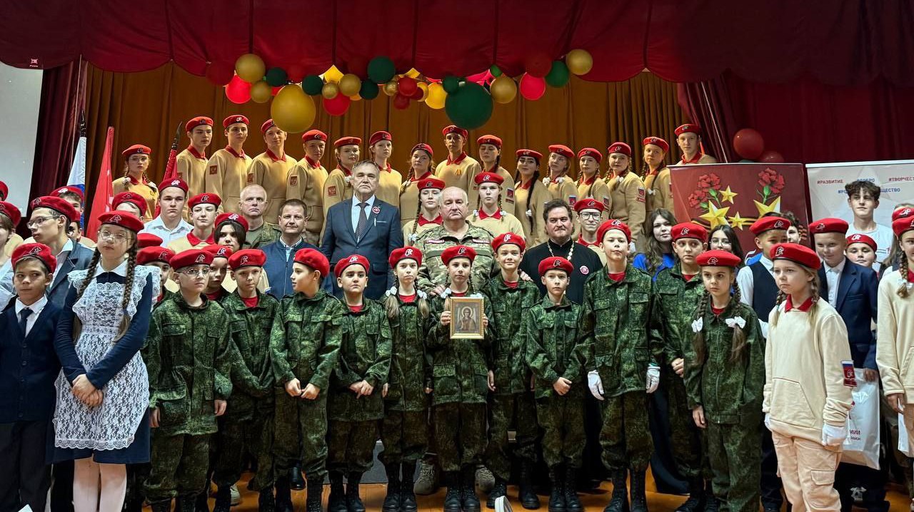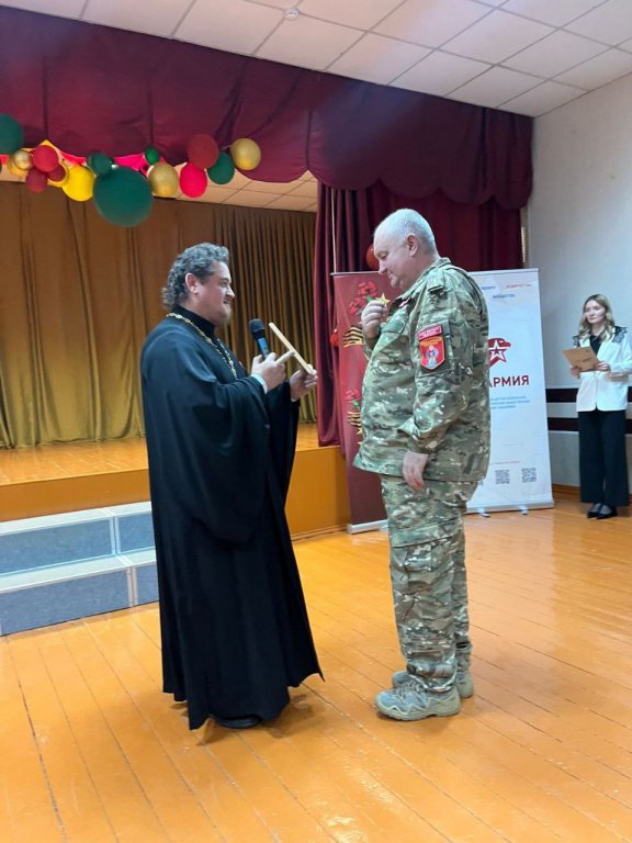 Также отец Александр передал в дар директору школы и руководителю Дома "ЮНАРМИИ" Александровского района Владимиру Юрьевичу Будникову икону Архангела Михаила.