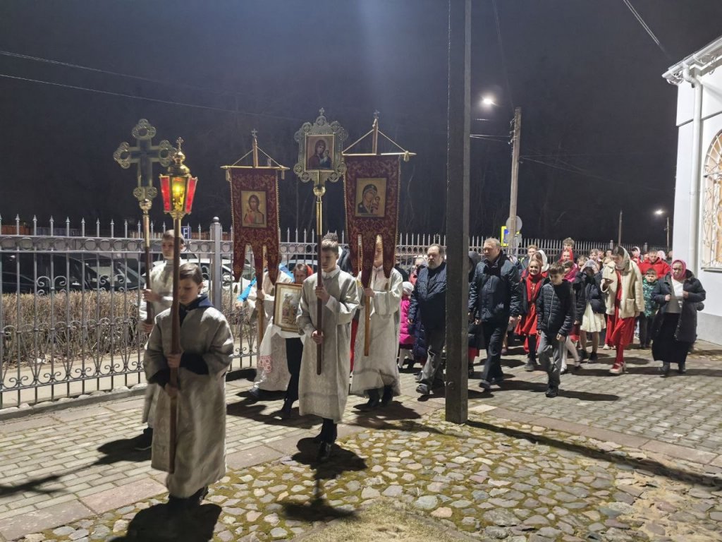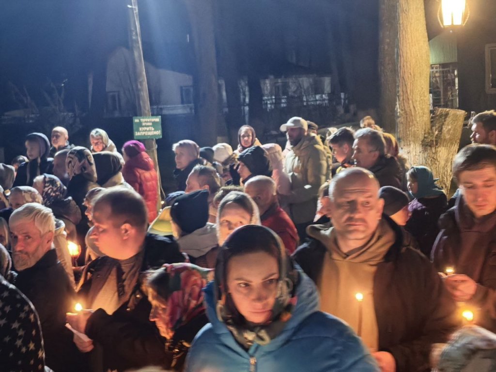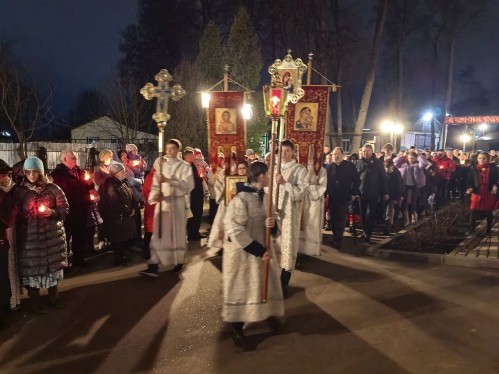 В полночь состоялся крестный ход вокруг храма с пением стихиры "Воскресение Твое Христе Спасе", служилась пасхальная утреня и Божественная литургия.